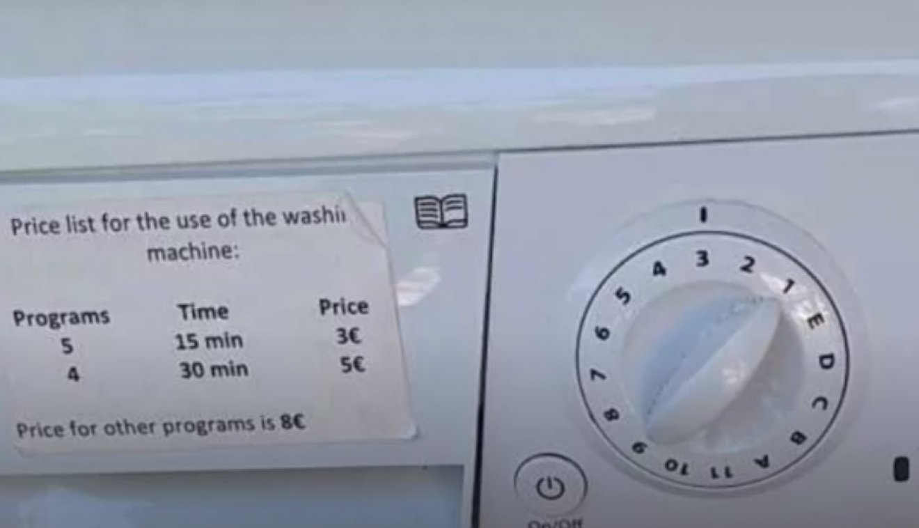 Na fotografiji koju je prosledio vidi se veš mašina sa cenovnikom, na kome je jasno naznačeno da postoji i jeftinija opcija pranja od 15 minuta, koja košta tri evra.