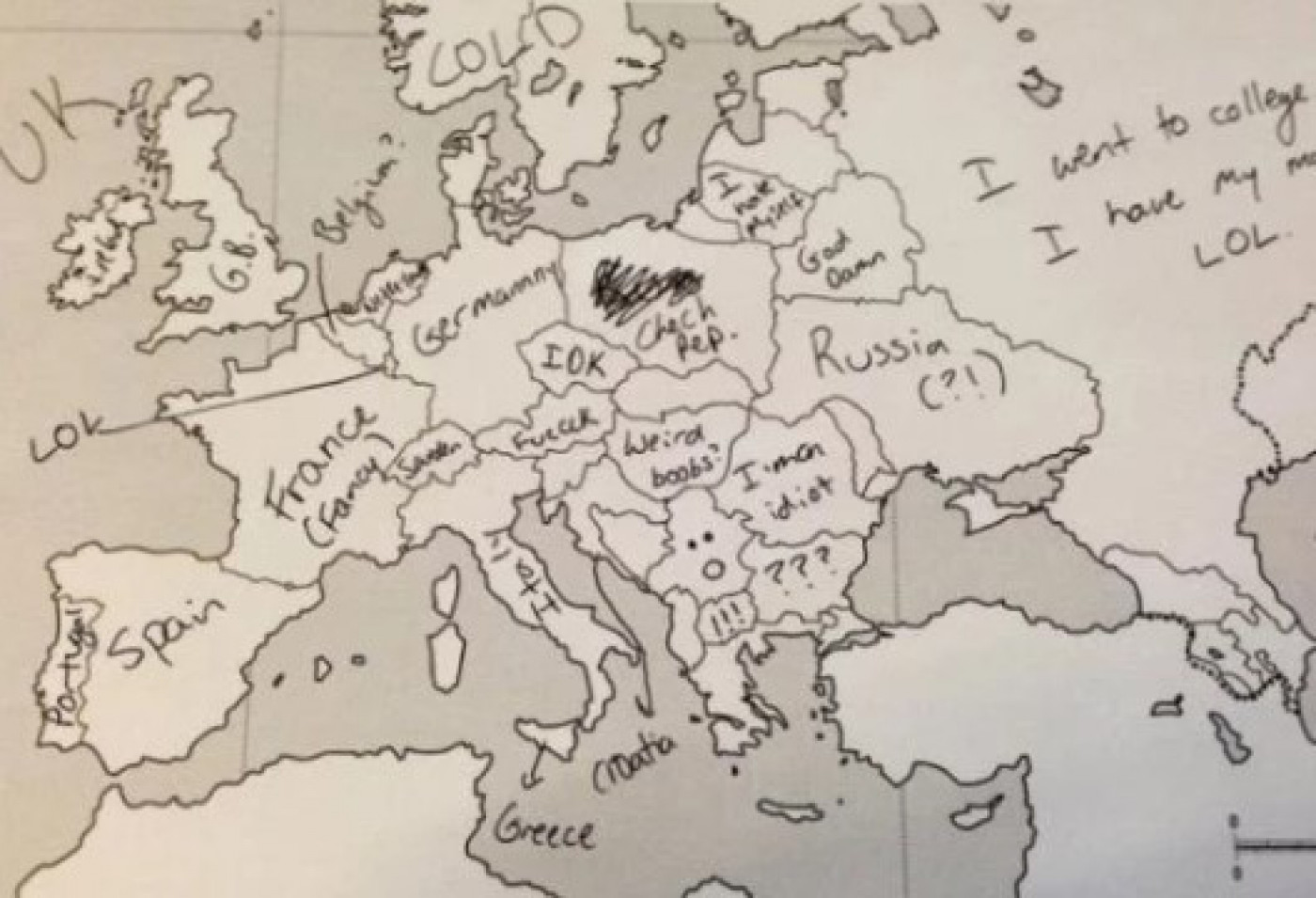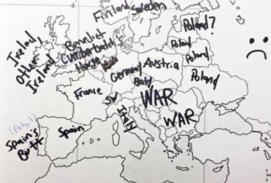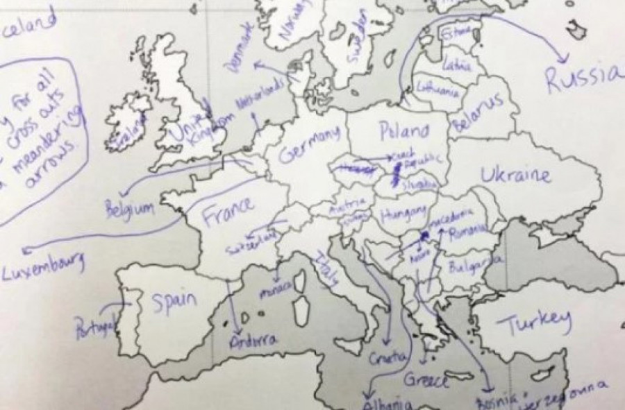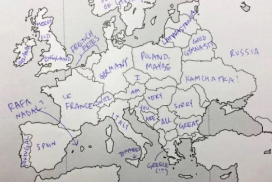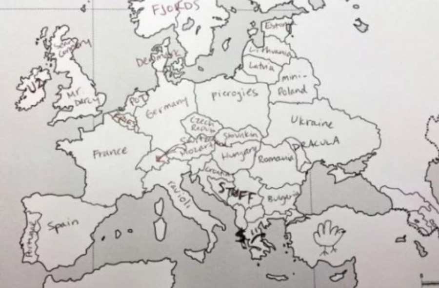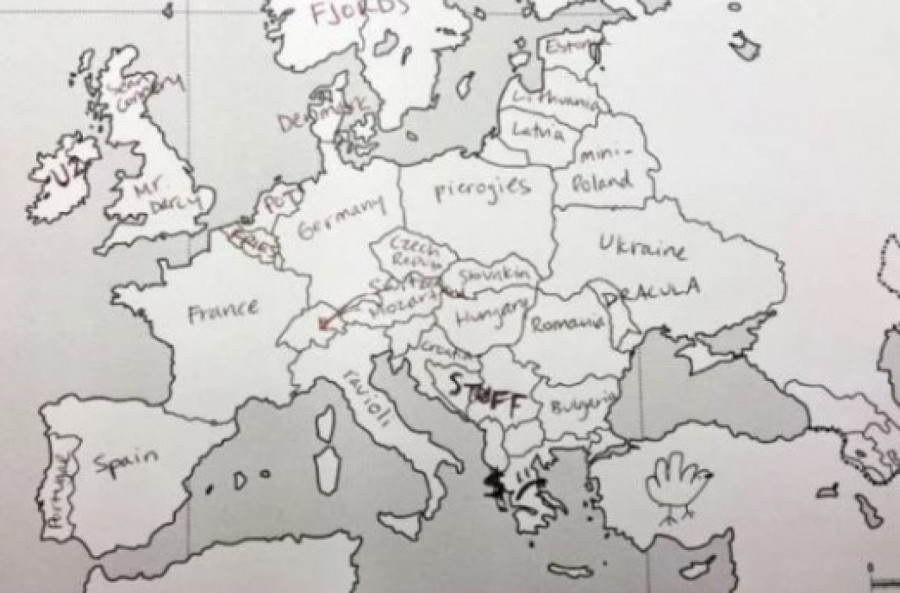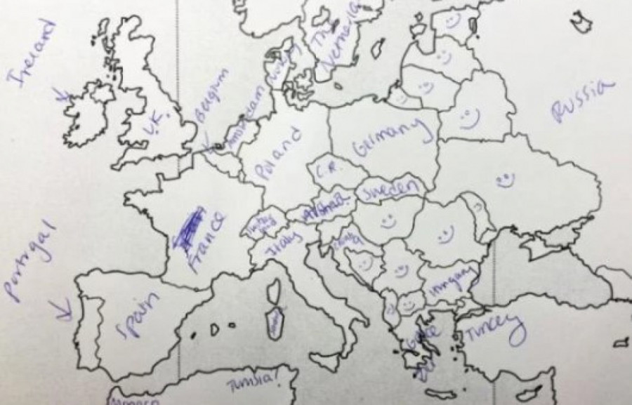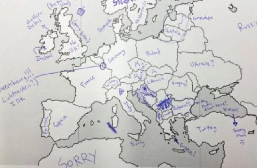 Međutim, odrđena grupa Amerikanaca dobila je test na kome su imali prazna mapu Evrope, nešto poput nemih karata koje smo svi imali u osnovnim školama, te su u državu upisivali njeno ime. Njihovo neznanje nasmejalo je mnoge Evropljane.