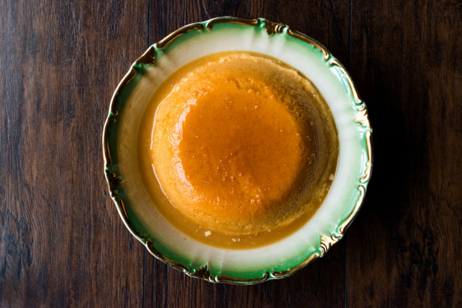 U pola litra mleka stavite kašiku šećera i četiri kašike griza. Kuvajte griz dok ne postane gust, a kada se prohladi, dodajte četiri prethodno umućena belanca. Sve to zajedno sjedinite i stavite u vlažne male činije ili modle da se ohladi. Na laganoj vatri topite četiri kašike šećera. Kada šećer počne da se karamelizuje, dodajte pola litra vrele vode. Dok se šećer topi, u odvojenoj posudi sjedinite četiri žumanca, kašiku brašna i pola litra mleka, pa sve to dodajte u smesu šećera i vode i neprestano mešajte dok se sve lepo ne sjedini. Preko već ohlađenog griza, sipajte karamel preliv, pa ostavite da se ohladi u frižideru.