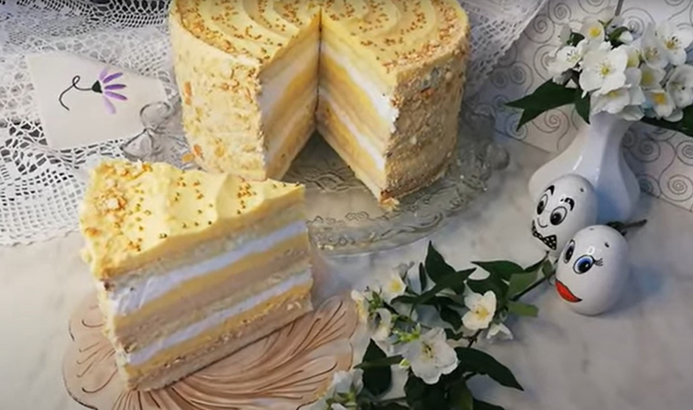 Ređajte tortu tako što na dno ide kora, a onda stavite polovinu fila od plazme. Žuti fil podelite na tri jednaka dela, a jedan stavite preko fila od plazme. Potom, nanesite polovinu umućene slatke pavlake. Potom stavite drugu koru, deo sa plazma filom, žuti fil, slatku pavlaku, potom treći biksvit i treći deo žutog fila.