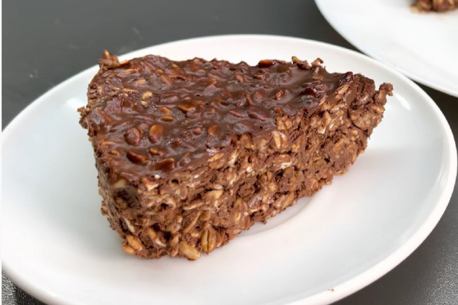 Dodajte zobene pahuljice i mešajte dok smesa ne postane glatka. Izlijte smesu u kalup. Ostavite da se ohladi na sobnoj temperaturi, najmanje 4 sata pre posluživanja, dok se ne stegne. Poslužite uz sveže voće.