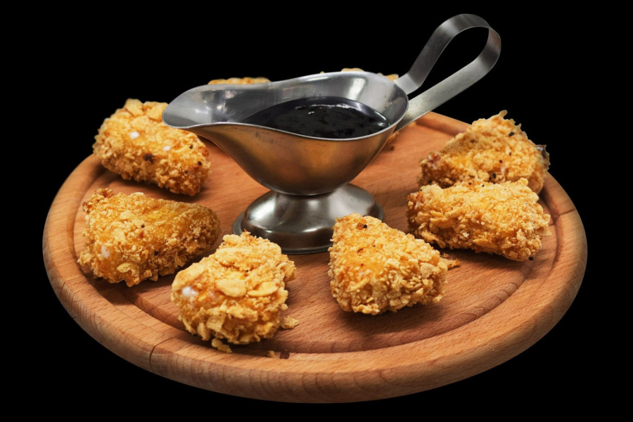 Pileće belo meso dobro istanjite i začiniti suvim začinom. Potom svaku šniclu prvo uvaljajte u brašno, zatim u jaja i na kraju u kornfleks.