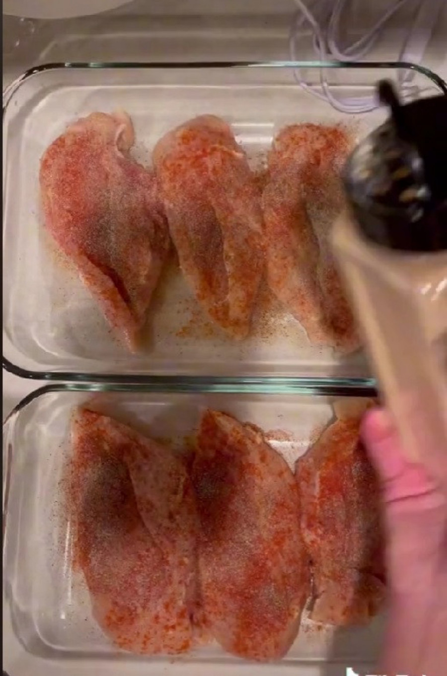 Pileće grudi začinite solju, biberom, alevom paprikom i belim lukom u granulama i to sa obe strane. Nakon toga premažite smesu od majoneza i parmezana samo sa gornje strane fileta. Preko toga pospite prezle a preko njih još malo grubo rendanog parmezana.