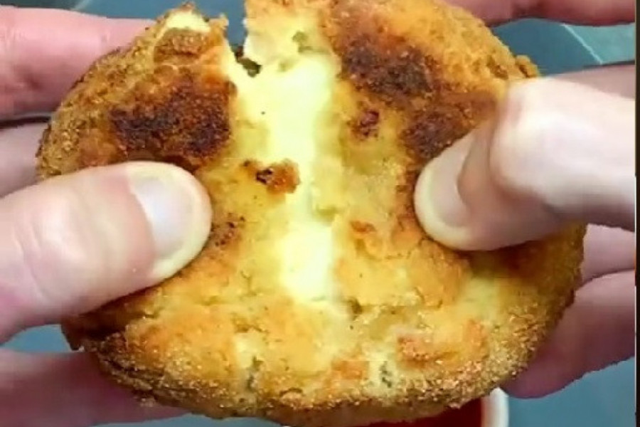Gaudu u komadu prethodno isecite na pravougaone oblike, pa uzmite po komad, stavite na sredinu pljeskavice, a onda je zatvorite sa svih strana i formirajte lopticu. Nakon toga, lopticu umočite u smesu za pohovanje, kako bi bila prekrivena sa svih stana,a zatim u tanjir sa prezlama, kako bi one u potpunosti prekrile lopticu. Onda lopticu ponovo malo spljoštite, kako bi se lakše i lepše ispržila.