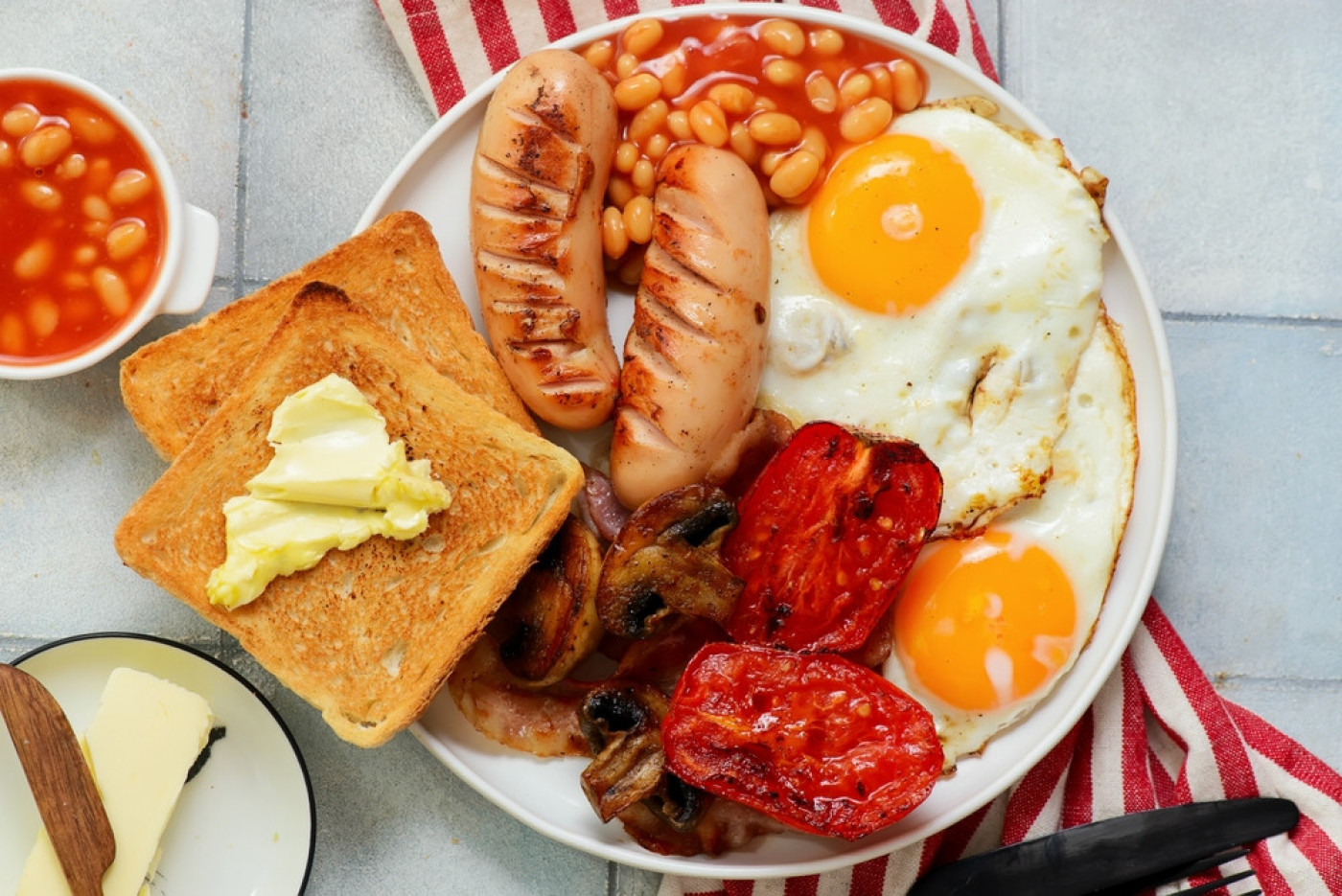 Ako tražite jutarnji obrok koji će vas stvarno napuniti energijom, pravi engleski doručak je odličan izbor. Ovaj klasik britanske kuhinje je obilan, kaloričan i pun ukusa - jaja na oko, hrskava slanina, sočne kobasice, zapečeni pasulj, pečeni paradajz i karamelizovane pečurke, sve servirano uz tost i toplu kafu ili čaj.