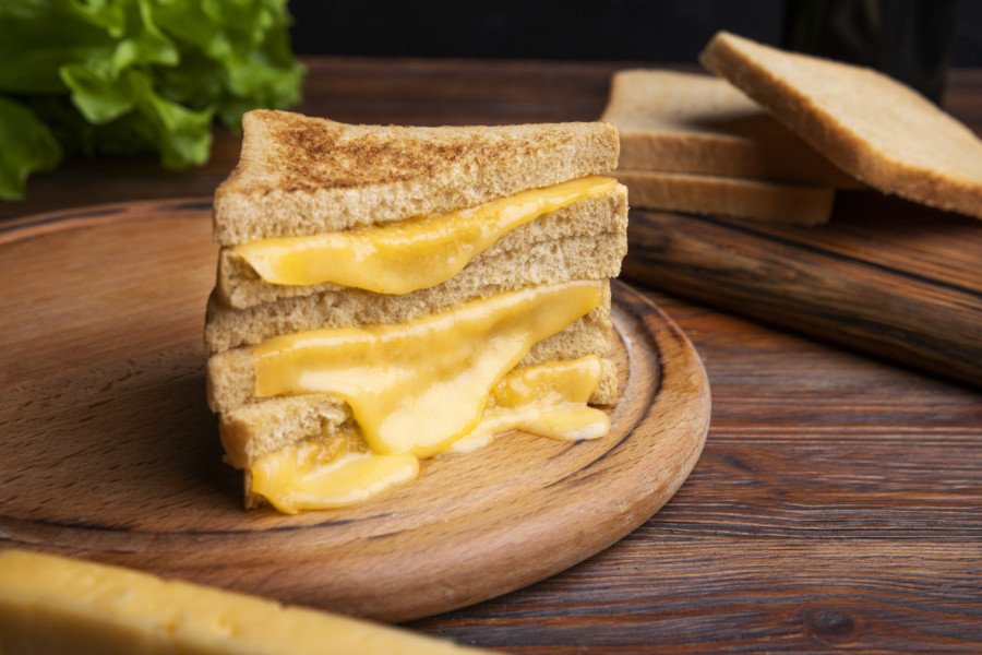 U dublju posudu sipati samo mleko, a u drugoj posudi dobro umutiti jaja. U treću sipati brašno, a u četvrtu rendani sir. Kriške hleba jako kratko umočiti u mleko, odmah ih izvaditi i između dlanova iscediti. Na jednu krišku staviti listić sira, pa preklopiti drugom kriškom.