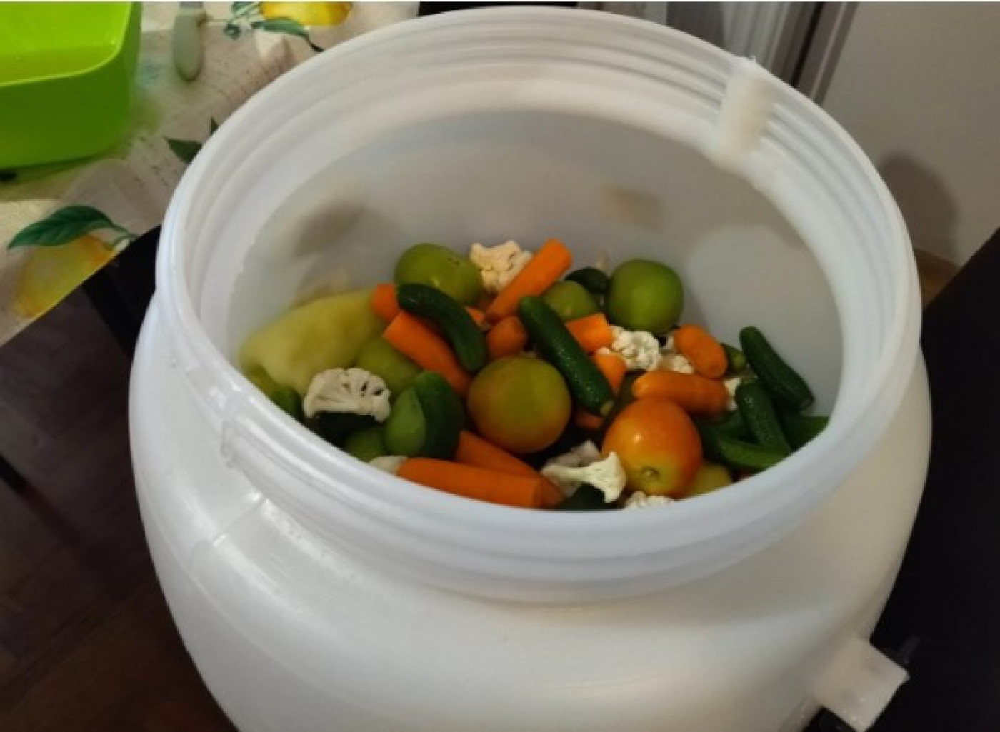 Prelijte povrće u buretu ohlađenim rastvorom. Povrće morate potpuno da prekrijete tečnošću. Stavite plastičnu rešetku, tanjir ili čistu mrežicu da pritisne povrće. Na to stavite čistu težu flašu s vodom.