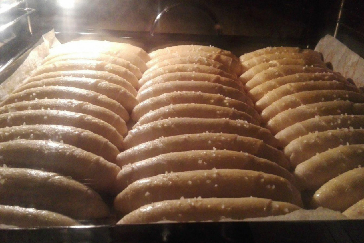 Mleko zagrejete da bude toplo. U polovini mleka dodate kašiku šećera i kvasac i ostavite da nadođe 15 minuta dok se kvasac počne dizati. U veliku posudu sjediniti brašno i so. Promešate i krenete da dodajete narasli kvasac, ostatak mleka, ulje i umesite testo. Čim sve sastojke sjedinite i smesa postane gipka, pokrijete posudu krpom i ostavite da se testo diže sat vremena na toplom mestu. Sačekate da se testo udvostruči. Radnu površinu samo premažete uljem, bez dodavanja brašna. Smesu delite na dva dela i iz svakog dela po 20 loptica, ukupno 40. Kuglice ponovo prekrijete krpom i ostavite da narastu još pola sata.