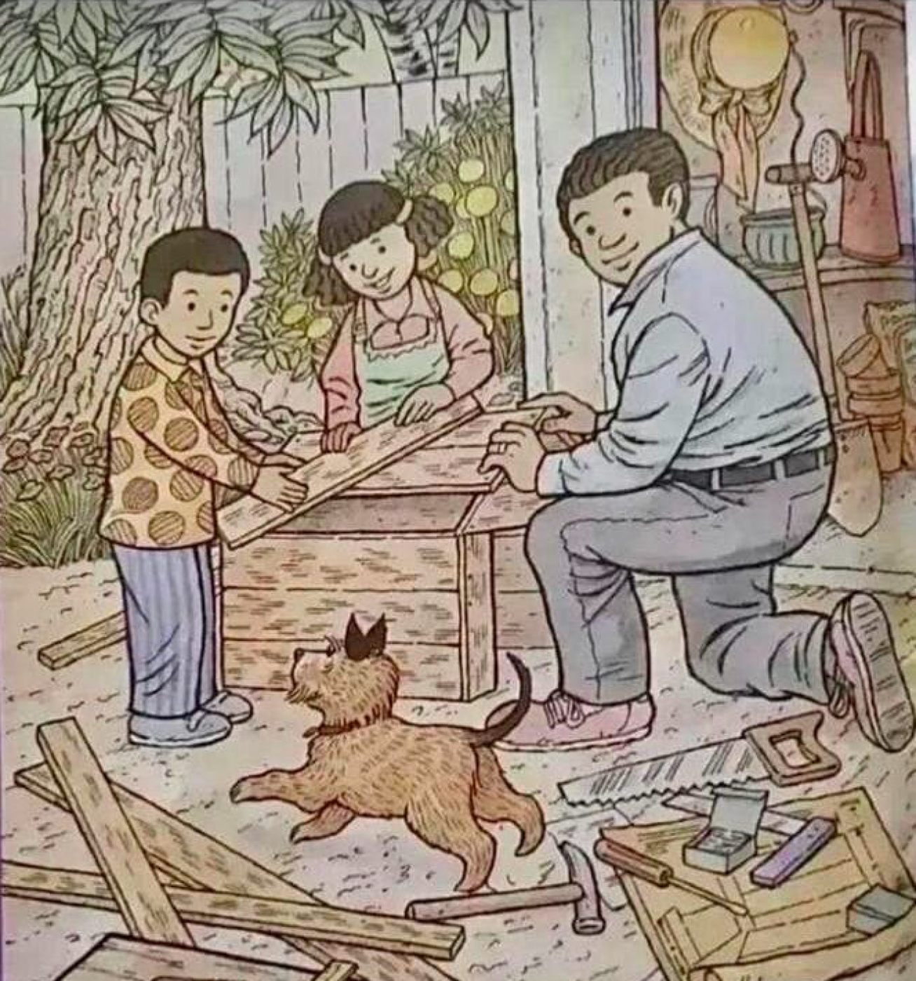 Za pomoć, evo gde se nalaze skrivene životinje: patka se krije između zadnjih nogu psa i čekića, slepi miš se nalazi između leve ruke dečaka i desne ruke devojčice, dok je leptir smešten iznad dečaka, između listova drveta i početka ivice ograde. Sada, kada znate gde da tražite, pokušajte ponovo i proverite da li vam je lakše da ih pronađete.
