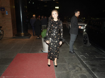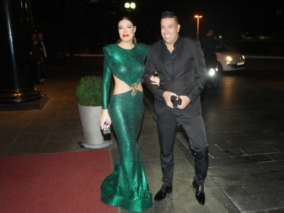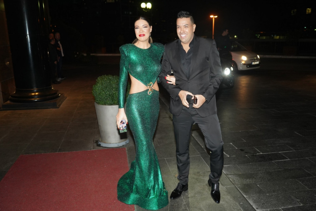 Atraktivna brineta je kosu podigla u visoku punđu, a prisutni su joj uskočili u pomoć zbog poteškoća koje je imala s dužinom suknje. Celu kombinaciju je zaokružila pink tašnicom, dok je šminka bila već uveliko prepoznatljiva za tu pevačicu - tamnije nijanse senke na uglovima očiju i neutralni karmin, dok je manikir bio u maslinasto-zelenoj boji.