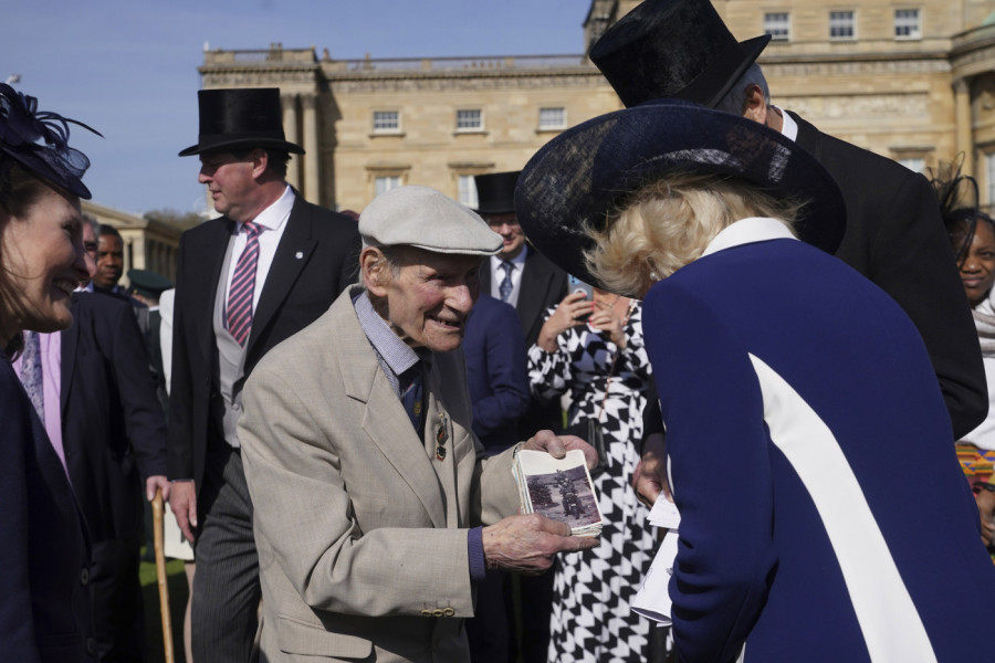 Kraljica Kamila na zabavi je blistala u mornarsko - beloj haljini i plavim šeširom, a najviše pažnje je posvetila Filipu Trejsiju (99) veteranu iz Drugog svetskog rata koji je učestvovao u iskrcavanju u Normandiji. Pored njega bio je i Džon Ejčison (99) takođe veteran iz Drugog svetskog rata koji je služio u 53. kraljevskom artiljeriskom puku. On je kraljici pokazao fotografije iz tog perioda kada je služio svojoj domovini.