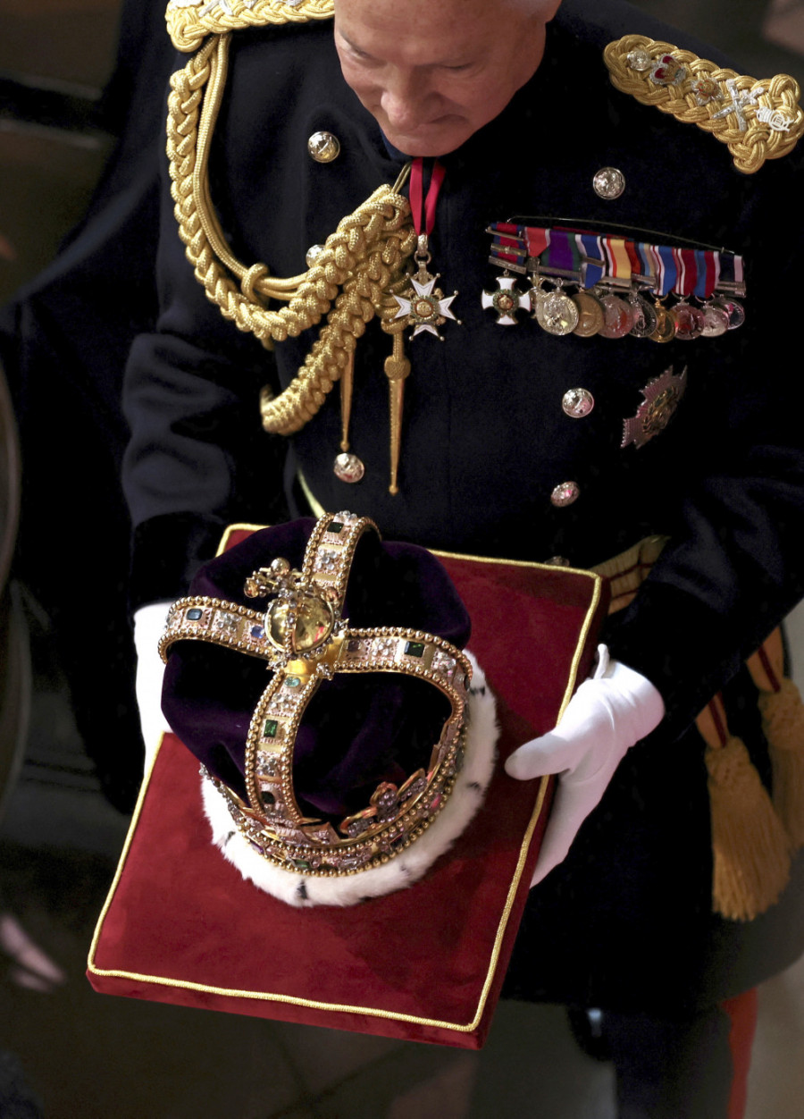 Ta kruna je stavljena na Čarlsovu tokom krunisanja, ali će potom biti zamenjena Carskom državnom krunom.Ona je nešto manja i lakša, teži manje od dva i po kilograma. Ukrašena je sa 2.868 dijamanata, 273 bisera, 17 safira, 11 smaragda i 5 rubina u srebrnom nosaču. Smatra se najkorišćenijom od svih kraljevskih kruna.