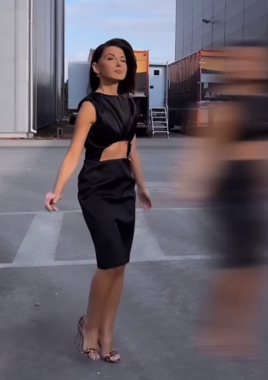 Naime, Sanja je snimljena kako šeta tolikom dozom samopouzdanja koju samo retke žene imaju. Najverovatnije je video nastao pre početka njene emisije, a Sanja je hrabro gazila visokim potpeticama da bi retko ko poželeo da joj stane na crtu na putu do cilja. Na sebi je imala crnu usku haljinu do ispod kolena, koja je bila neobičnog kroja.