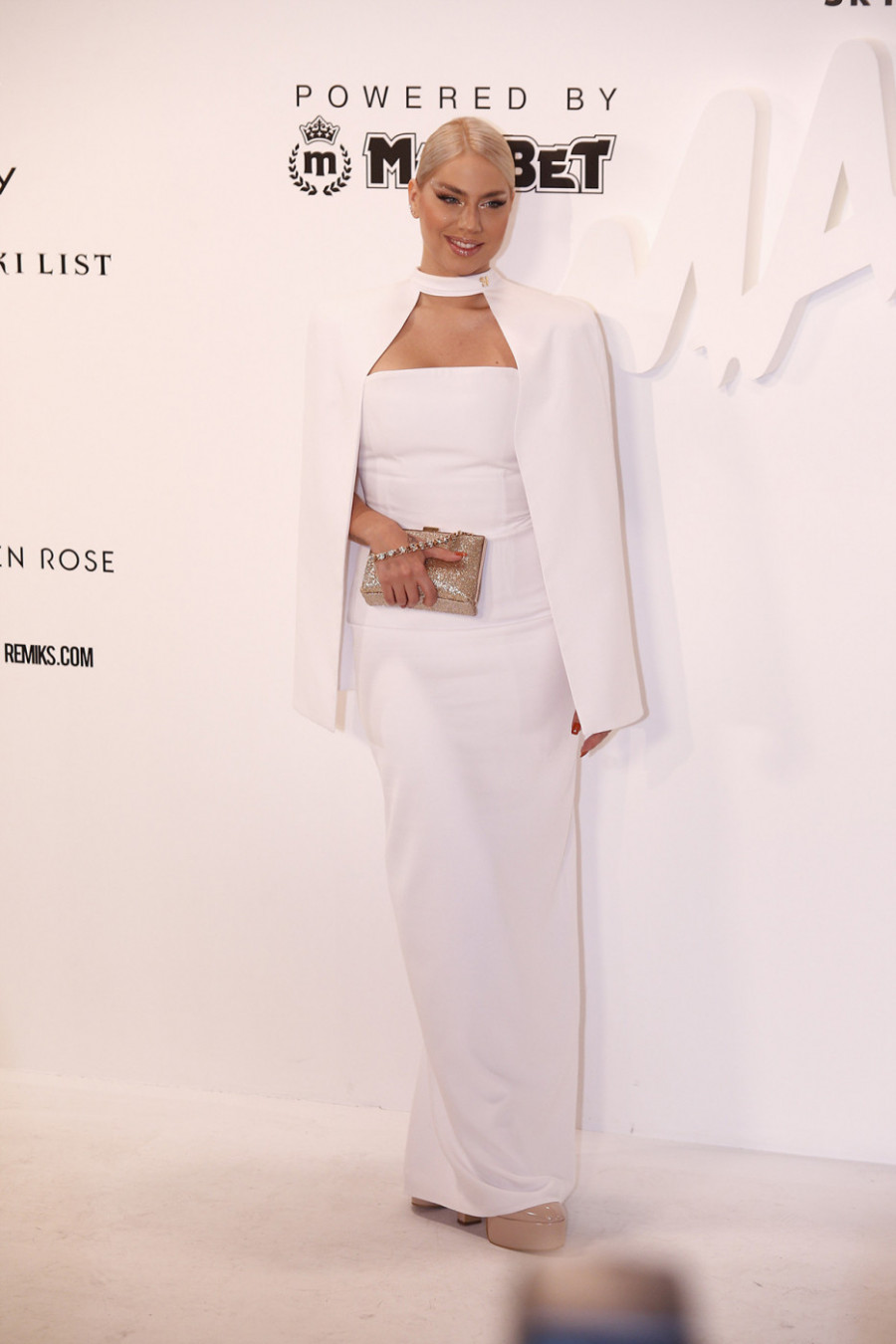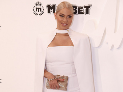 Kupaći je bio u vidu topa i donjeg dela, dok je preko središnjeg dela išao neki vid prozirne tkanine, koji jedva da je prekrivao deo stomaka. Cela kombinacija bila je dopunjena kaiševima u boji zlata, dok je pevačica preko svega ognula masivnu crnu bundu i ponela elegantnu tašnu, brenda Versaći. Frizura je bila izraženog volumena, dok je i šminka bila jača, a od nakita je ponela retro minđuše u boji zlata.