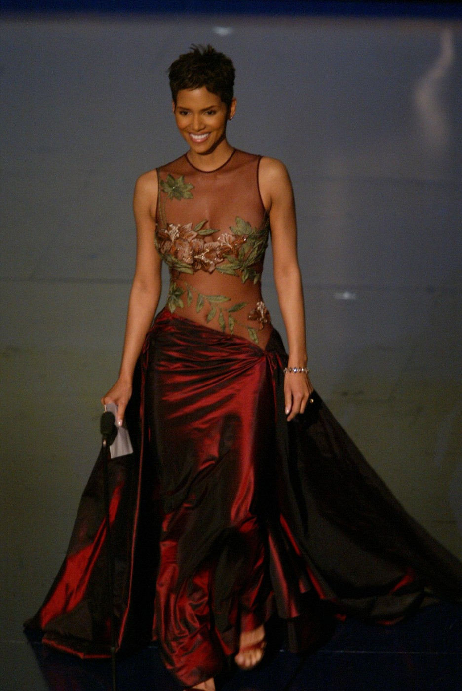 Hale Beri dobila je Oskara za najbolju glumicu za „Bal monstruma“ 2002. godine. Na dodeli se pojavila u kultnoj kreaciji koja je u gornjem delu bila potpuno prozirna i ukrašena cvećem, dok je donji deo sa dugačkim šlepom bio u boji crvenog vina. Bilo je to savršeno izdanje za crveni tepih.