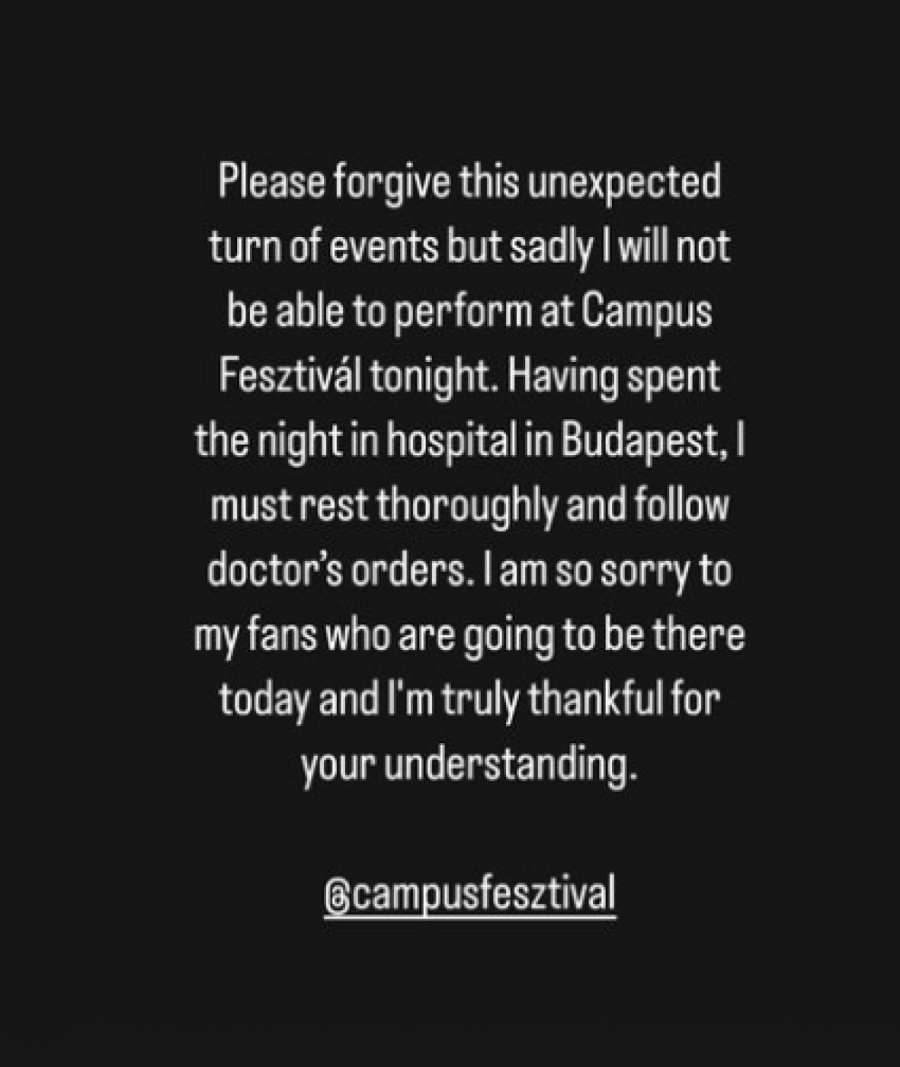 - Molim vas, oprostite zbog ovog neočekivanog razvoja događaja, ali nažalost neću moći da nastupim večeras na Campus Festivalu. Provela sam noć u bolnici u Budimpešti i moram se temeljno odmoriti i slediti uputstva lekara - napisala je Rita u svojoj objavi na Instagramu.