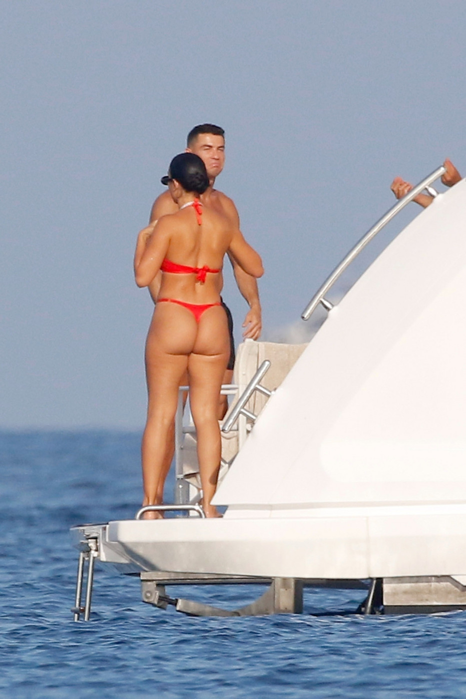 Georgina i Ronaldo su nastavili da se kupaju, plivaju, a nekoliko puta on je uhvatio i za zadnjicu. Primećujemo, da supruga slavnog fudbalera svaki put nosi sve manje i manje kupaće kostime. Ovoga puta, ona je na sebi imala crveni tanga bikini.