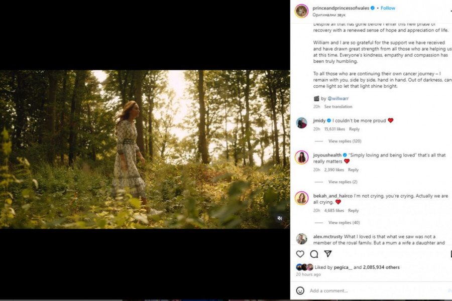 Britanski preduzetnik Džejms, koji ima 37 godina i najmlađi je član porodice Midlton, brzo je reagovao na objavu, napisavši u komentaru na Instagramu: "Ne mogu biti ponosniji", uz crveno srce.