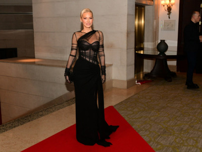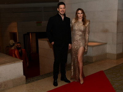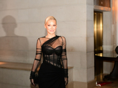 Celokupni stajling zaokružila je krem salonkama veoma visokih potpetica, dok joj je u talasima niz ramena padala savršeno stilizovana kosa boje meda. Šminka zemljanih tonova dodatno je istakla njenu lepotu, dok je haljina istakla sve njene adute i stajala joj kao salivena.
