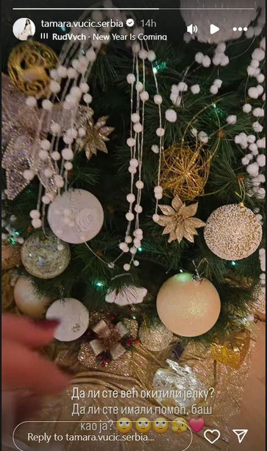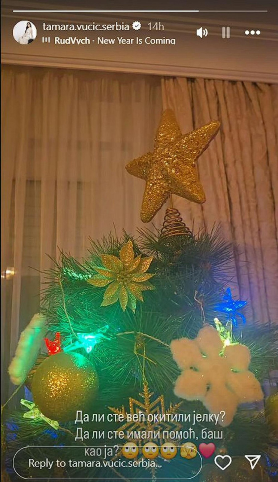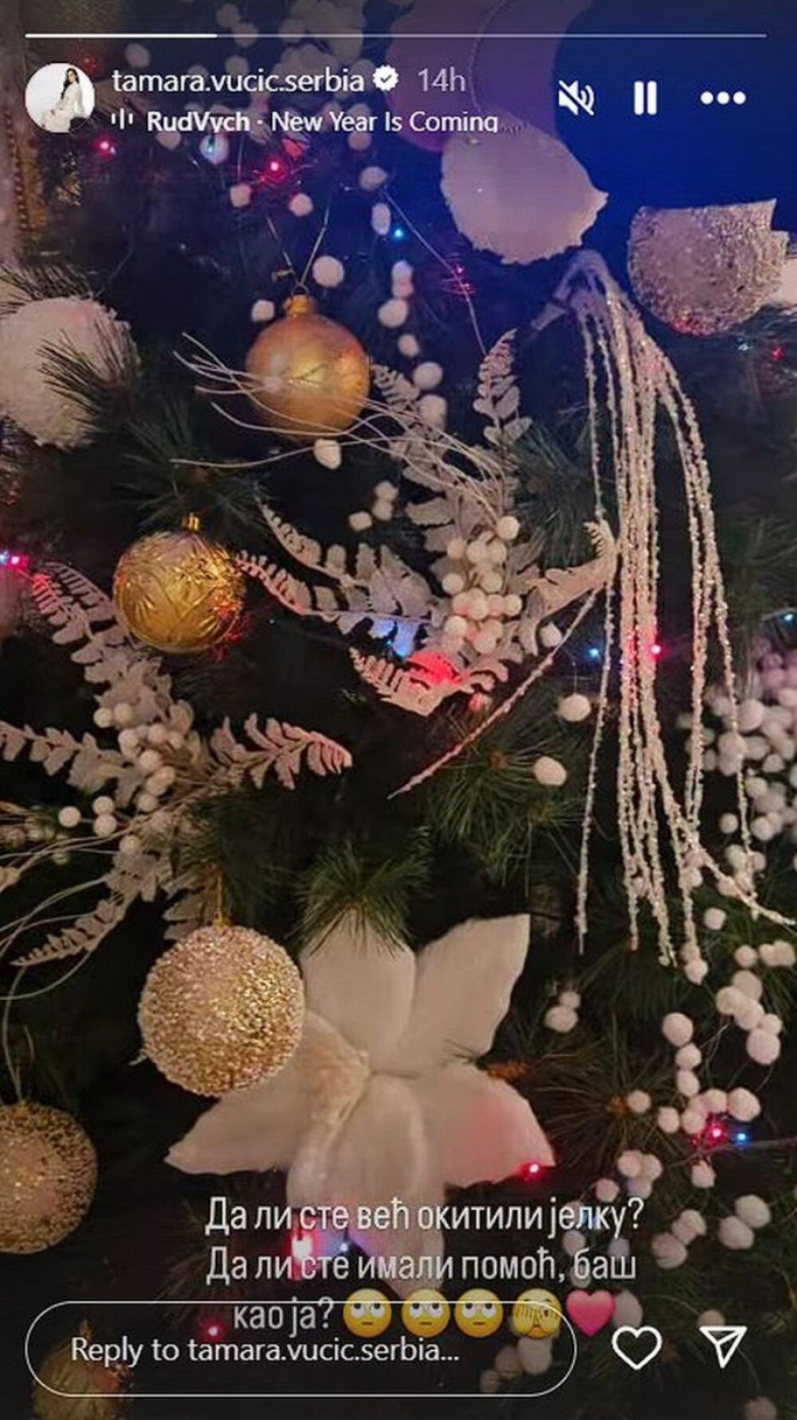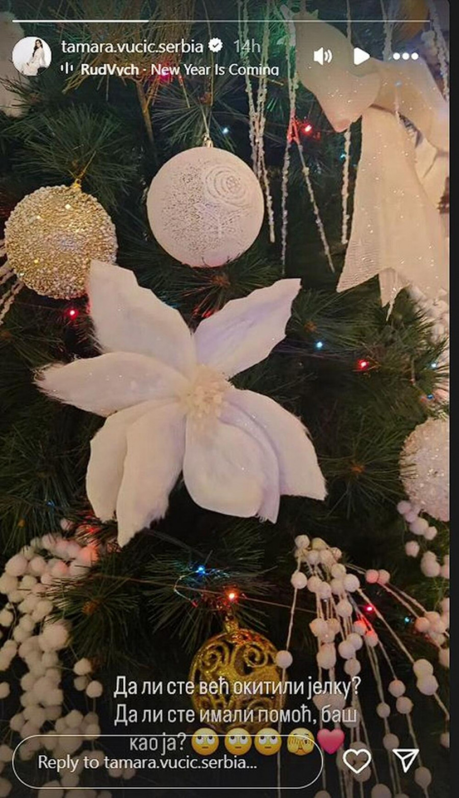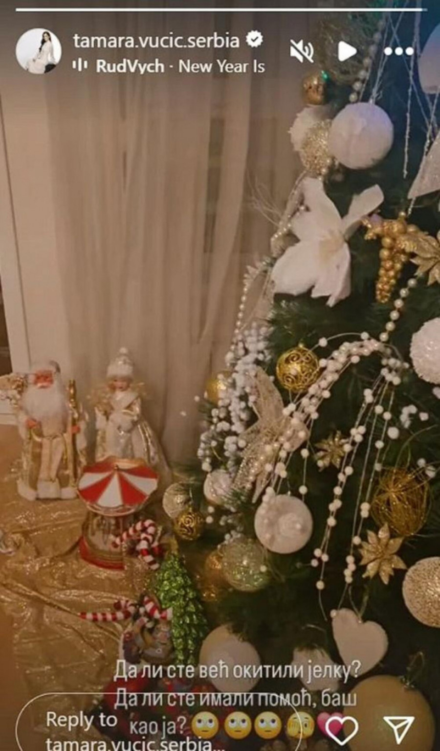 Tako je bilo i ovog puta nakon što je ona odlučila da sa svojim pratiocima na Instagramu otkrije kako izgleda jedan detalj iz njenog doma. Naime, u pitanju je snimak u vidu Instagram priče na kom se vidi da je prva dama odlučila da kuću dekoriše u duhu predstojećih praznika, pa je tako pokazala i na koji način je ukrasila novogodišnju jelku. Međutim, ono što je svima privuklo posebnu pažnju jeste činjenica da je Tamara imala dragocenu pomoć prilikom obavljanja tog zadatka - od nje se nije odvajao njen sin Vukan.