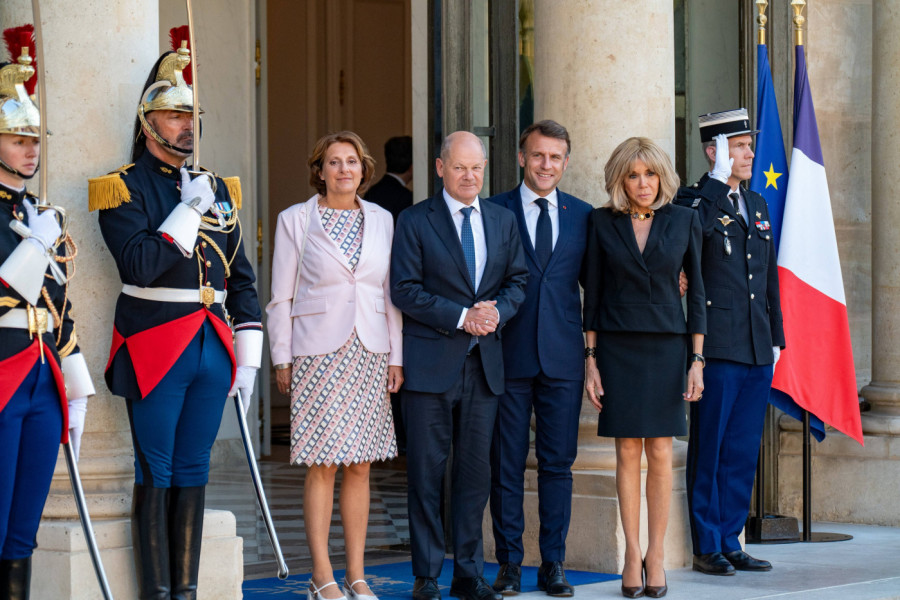 Tako je bilo i ovog puta, kada se elegantna Makronova pojavila rame uz rame sa mužem u Jelisejskoj palati, gde su dočekali goste iz Nemačke - kancelara te zemlje, Olafa Šolca, i njegovu suprugu, Britu Ernst.