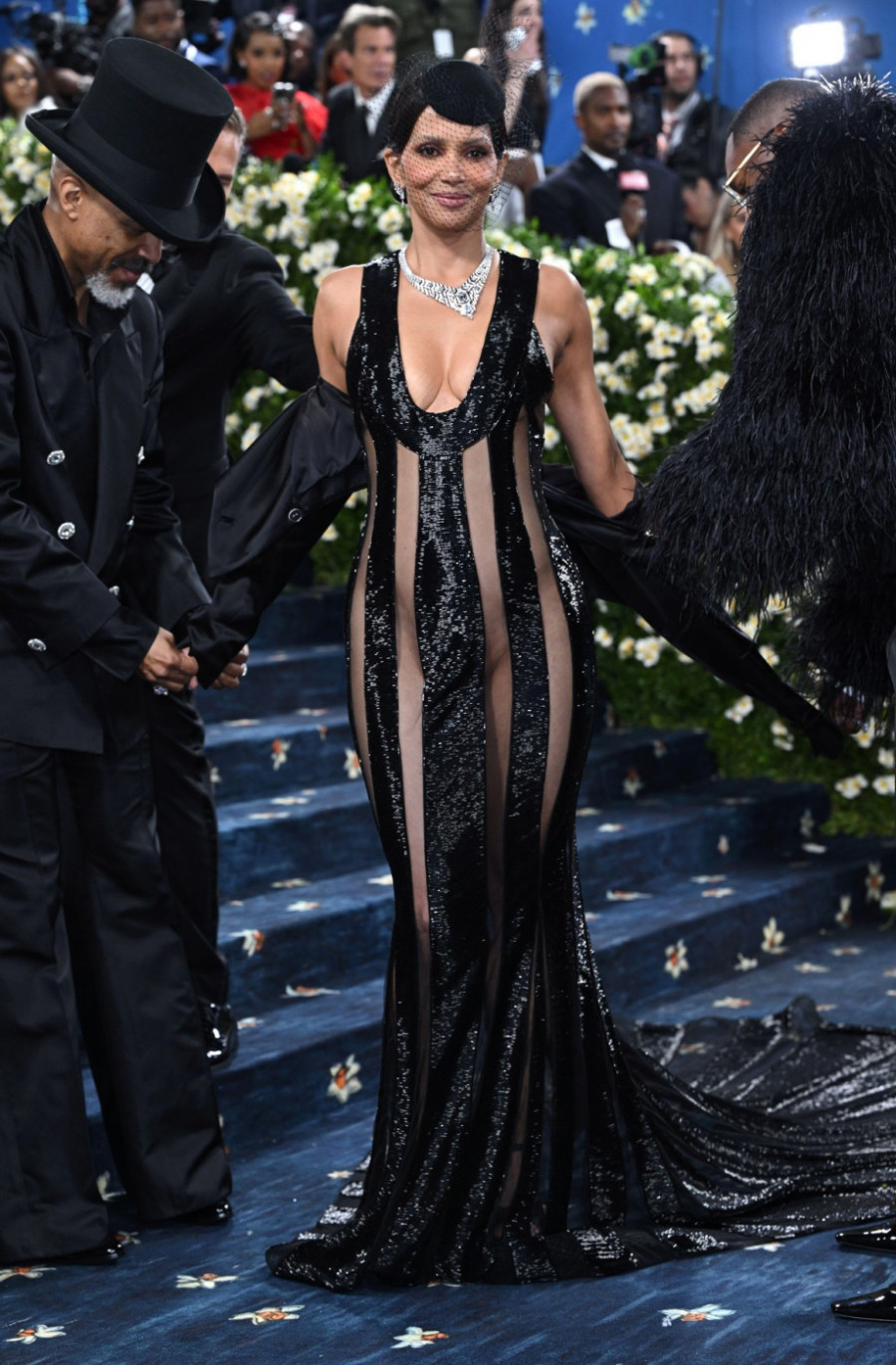 Jedna od onih koja uvek izazove pažnju svojom pojavom je atraktivna glumica Hale Beri. Ona ima neverovatnih 58 godina, a na prestižnom događaju pojavila se u atraktivnoj crnoj haljini sa dubokim prorezima koje otkrivaju da je glumica ovoga puta "zaboravila" da obuče donji veš. Gornji deo takođe nije ostavljen mašti, već je bujni dekolte bio u prvom planu. Pak, glumica je odlučila da ipak ponese satenski sako i pokrije ramena.
