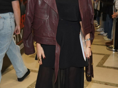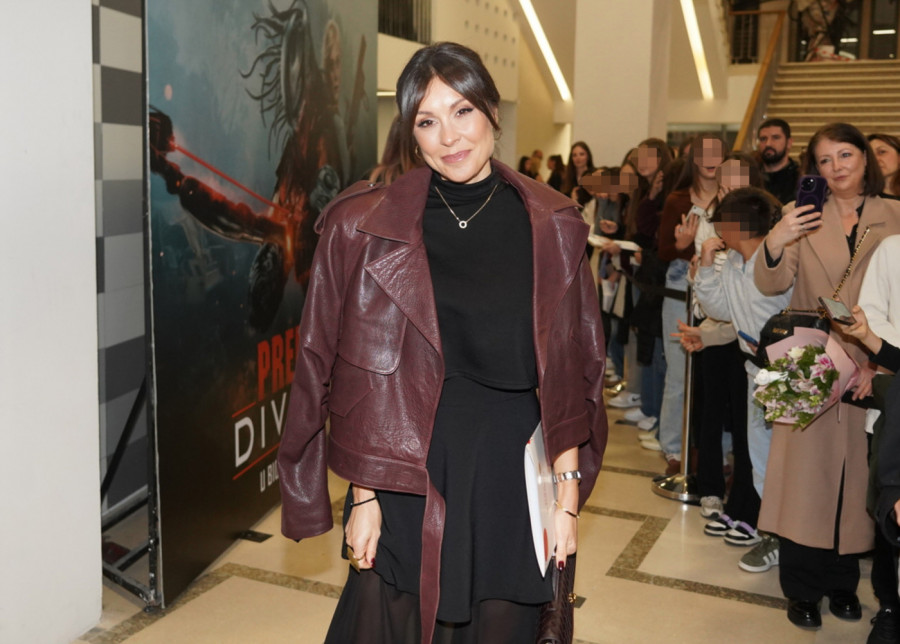 Posebnu pažnju privukle su duge bordo čizme od lakirane kože, model koji unosi kontrast u tamnu kombinaciju. Čizme daju autfitu dozu luksuza i jasno pokazuju da Dragana bira komade koji su istovremeno trendi i bezvremenski. U ruci nosi kožnu jaknu u identičnoj nijansi, čiji se bogati tonovi savršeno uklapaju sa ostatkom kombinacije, dok je u istom tonu i tašna.