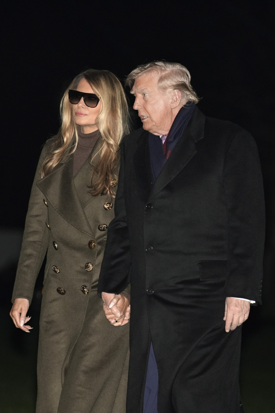 Nakon što su tradicionalno proslavili Dan zahvalnosti na svom imanju Mar-a-Lago, Melanija i Donald Tramp su se kasno uveče vratili u Vašington. Za let od Floride do prestonice, Melanija je izabrala dugi, strukirani kaput maslinastozelene boje, s dvorednim kopčanjem i zlatnim dugmićima.