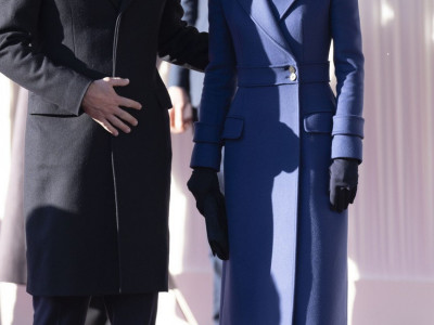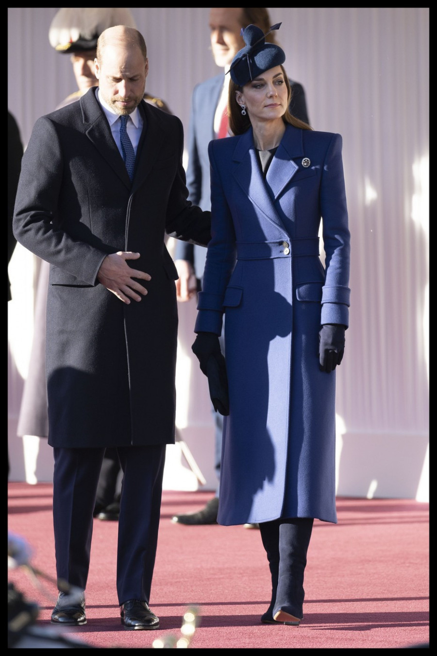 Princ Vilijam je, u skladu sa protokolom, izabrao klasično plavi odelo sa diskretnom kravatom, takođe u identičnoj nijansi Kejtinog kaputa, stvarajući skladnu vizuelnu celinu sa princezom. Njihov zajednički nastup na aerodromu, razmena osmeha, rukovanja i kratkih razgovora sa gostima, pokazao je njihovu prirodnu eleganciju i diplomatsku toplinu, potvrđujući ulogu para kao centralnih figura britanske kraljevske porodice.