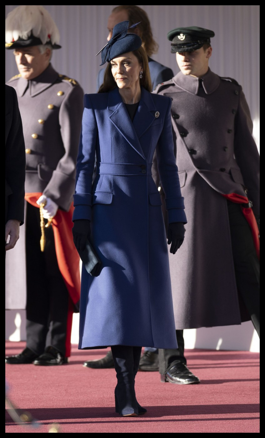 Kejt je još jednom pokazala besprekornu modnu viziju birajući kombinaciju britanskih brendova. Reciklirala je čuveno modno izdanje iz 2023. godine, pa se pojavila u kraljevsko-plavom kaputu, kreaciji omiljene dizajnerke Sare Barton. Britanska kreatorka je osmislila prelepi model dok je radila za modnu kuću Aleksandar Mekvin (Alexander McQueen), a u međuvremenu je postala kreativna direktorka brenda Živanši (Givenchy.)