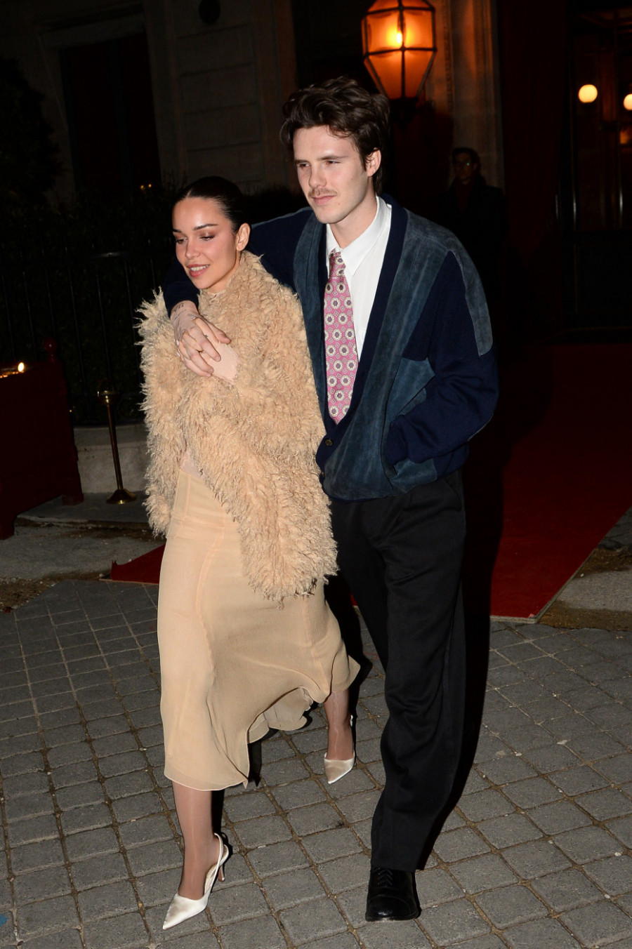Kruz je pokazao svoj zabavan stil u opuštenom crnom odelu i roze kravati sa dezenom, dok je njegova devojka, Džeki Apostel, odabrala monohromatski bež stajling sa poluprovidnom bluzom, maxi suknjom, krznenim kaputom i satenskim cipelama sa potpeticom.