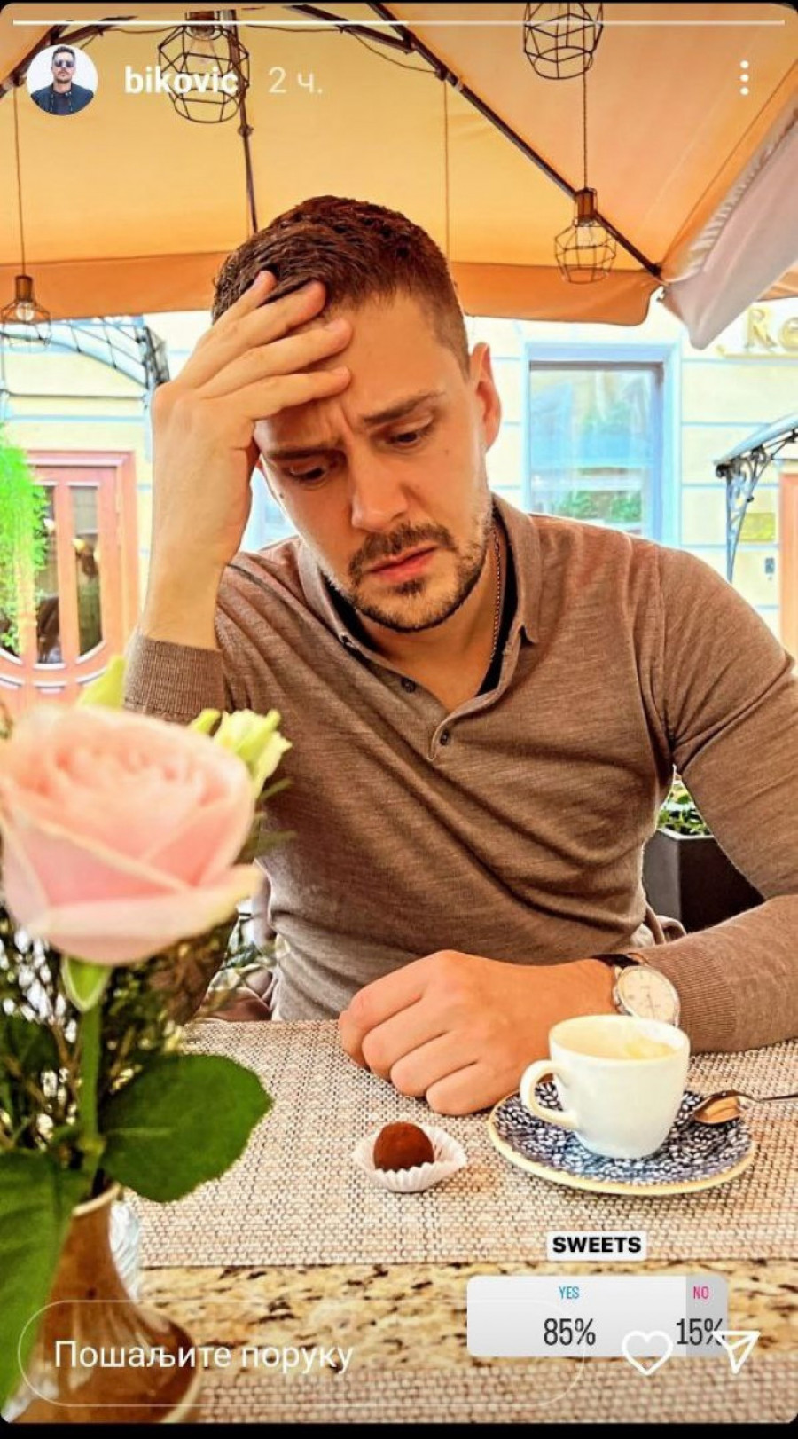 Kako bi ovu svoju „muku“ rešio, objavio je i anketu za svoje pratioce, kako bi ga oni posavetovali da li da kolačić pojede ili da mu odoli. Naravno, fanovi su mu izašli u susret i glasali i to vrlo ubedljivo. Čak 85 odsto njih je Bikovića posavetovalo da slatkiš smaže. Sa druge strane, 15 posto glasača je apelovalo na njegovu disciplinu.