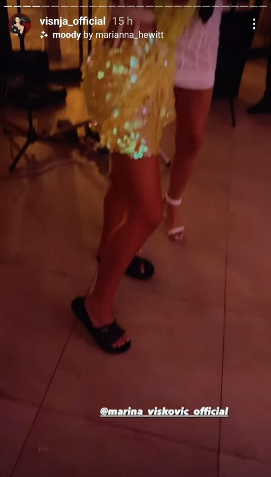 Mladoženja nije jedini koji je izazvao reakcije svojim izborom obuće. To isto je uradila i pevačica Marina Visković koja je na svadbi zapevala ni manje ni više nego u sportskim papučama, koje se nisu nimalo slagale sa njenom žutom mini haljinom. Ali, mora joj se odati priznanje što udobnost stavlja na prvo mesto.