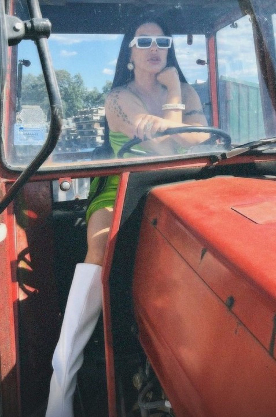 Mnogima je zapalo za oko da je duga spuštena kosa koja Seki doseže do preko kukova uz čizme do kolena možda preterana za ove vrućine, ali izgleda da njoj to nimalo nije smetalo. Seki sve to do te mere nije smetalo da je čak odlučila da pokuša da provoza ni manje ni više, već traktor! Ne znamo koliko je uspela u tome u belim špicastim čizmama na štiklu, ali sigurno je da je ambijent bio i više nego idealan za fotografisanje.