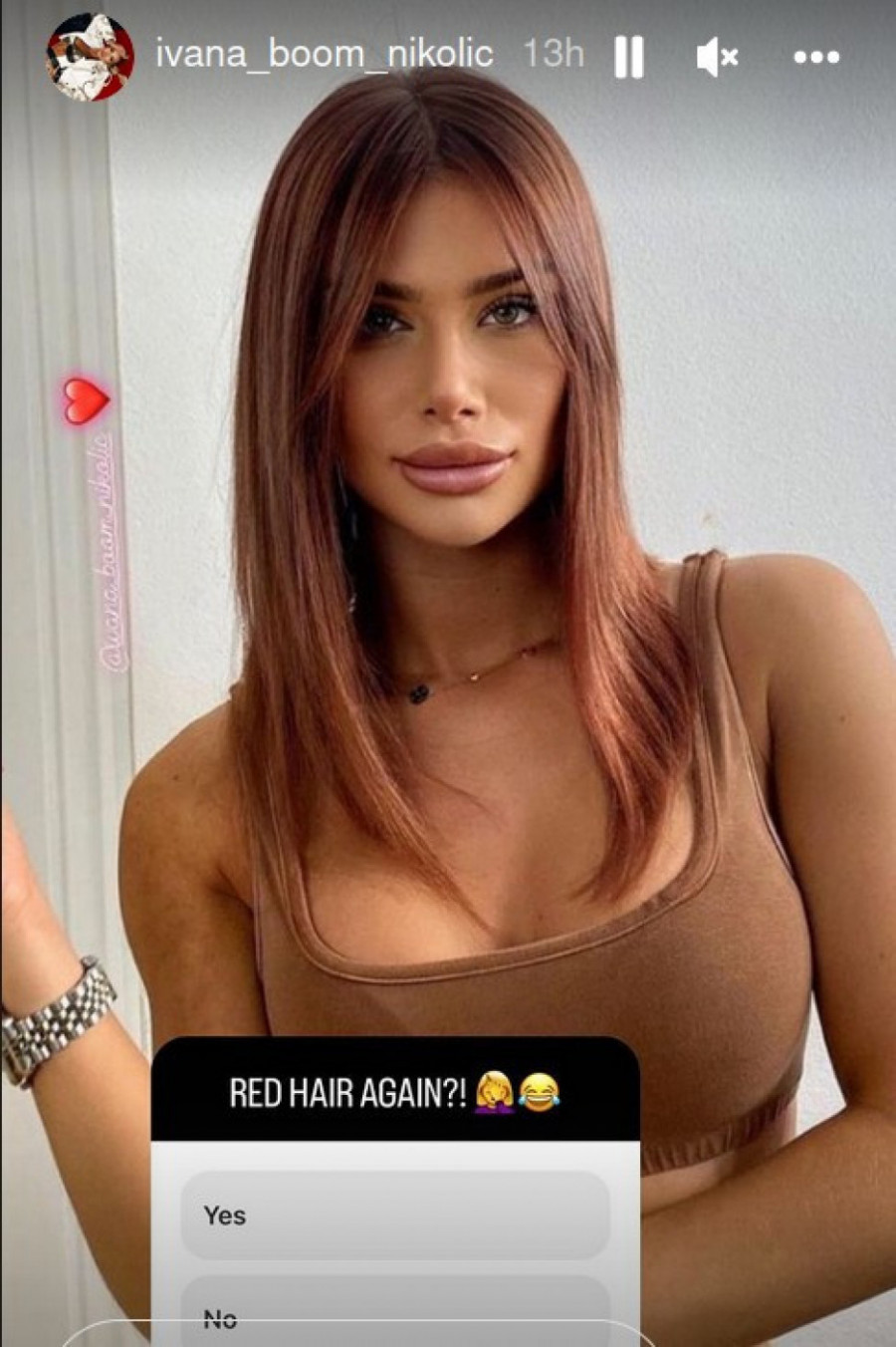 Ona je i dalje plavuša duge kose koja je ovoga puta pak skratila šiške, a lice sakrila iza velikih naočara za sunce. Ivana je juče na priči na Instagramu pitala fanove da li da se možda ponovo ofarba u crveno, postavivši fotografiju iz njenog izdanja crvenokose.