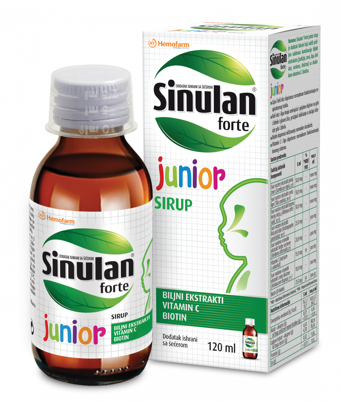 Za najmlađe, Sinulan Forte Junior pruža nežnu i efikasnu negu disajnih puteva. Ovaj sirup kombinuje šest biljnih ekstrakata, uključujući zovu, lipu i beli slez, uz vitamin C, biotin i andrografis, koji je prirodni antibiotik i antivirotik, jedinstven na tržištu za decu. Sinulan Forte Junior pomaže u održavanju zdravlja gornjih i donjih disajnih puteva, jačanju imuniteta i očuvanju dobrog stanja sluzokože.