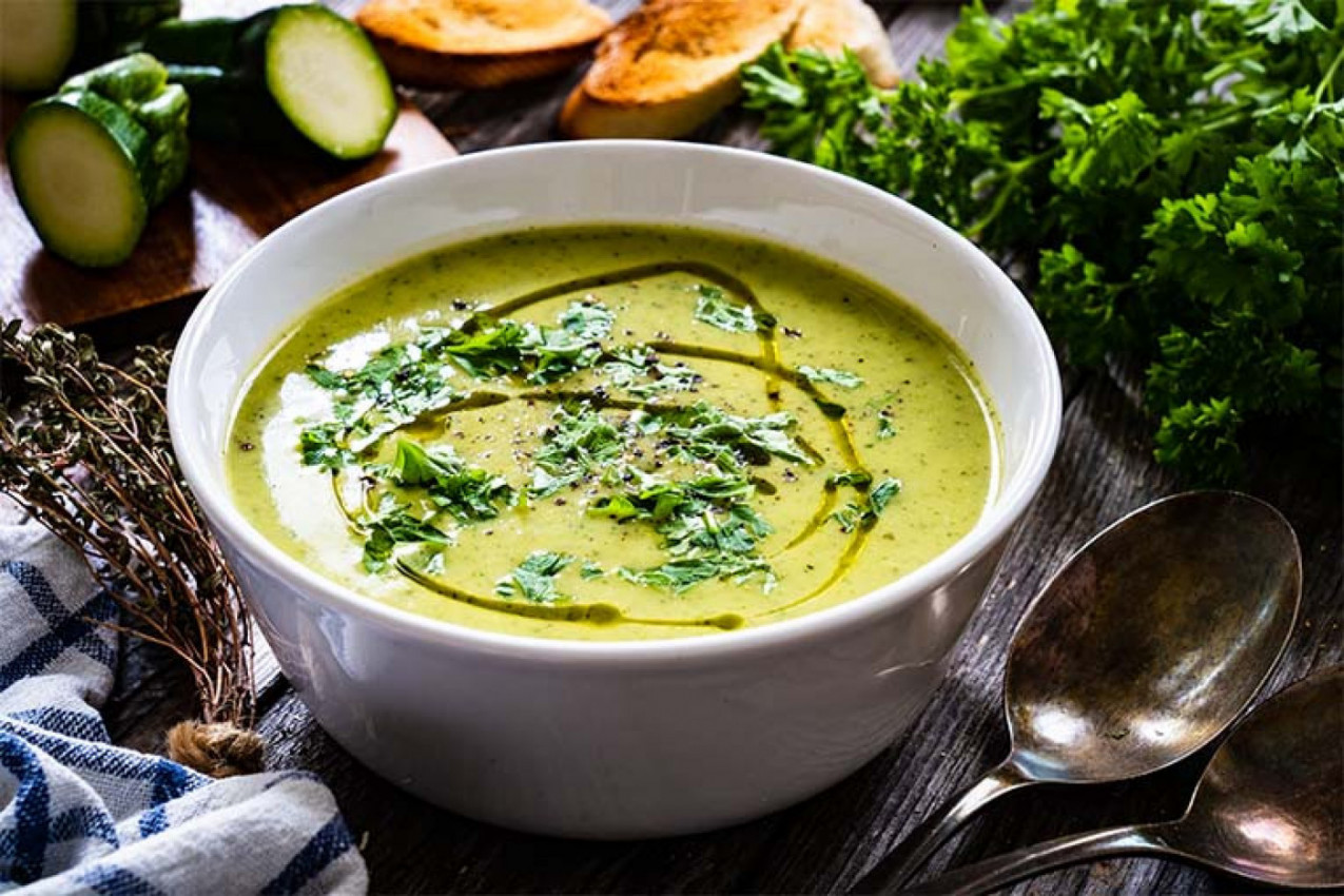 Za lagan, topao obrok birajte zelenu detoks supu: tikvica, praziluk, spanać i peršun, kratko kuvano i izblendano u glatku, nežnu teksturu. Ako želite zasitniju varijantu, dodajte sočivo ili leblebije, plus prstohvat kurkume i đumbira za smanjenu nadutost i podršku varenju.