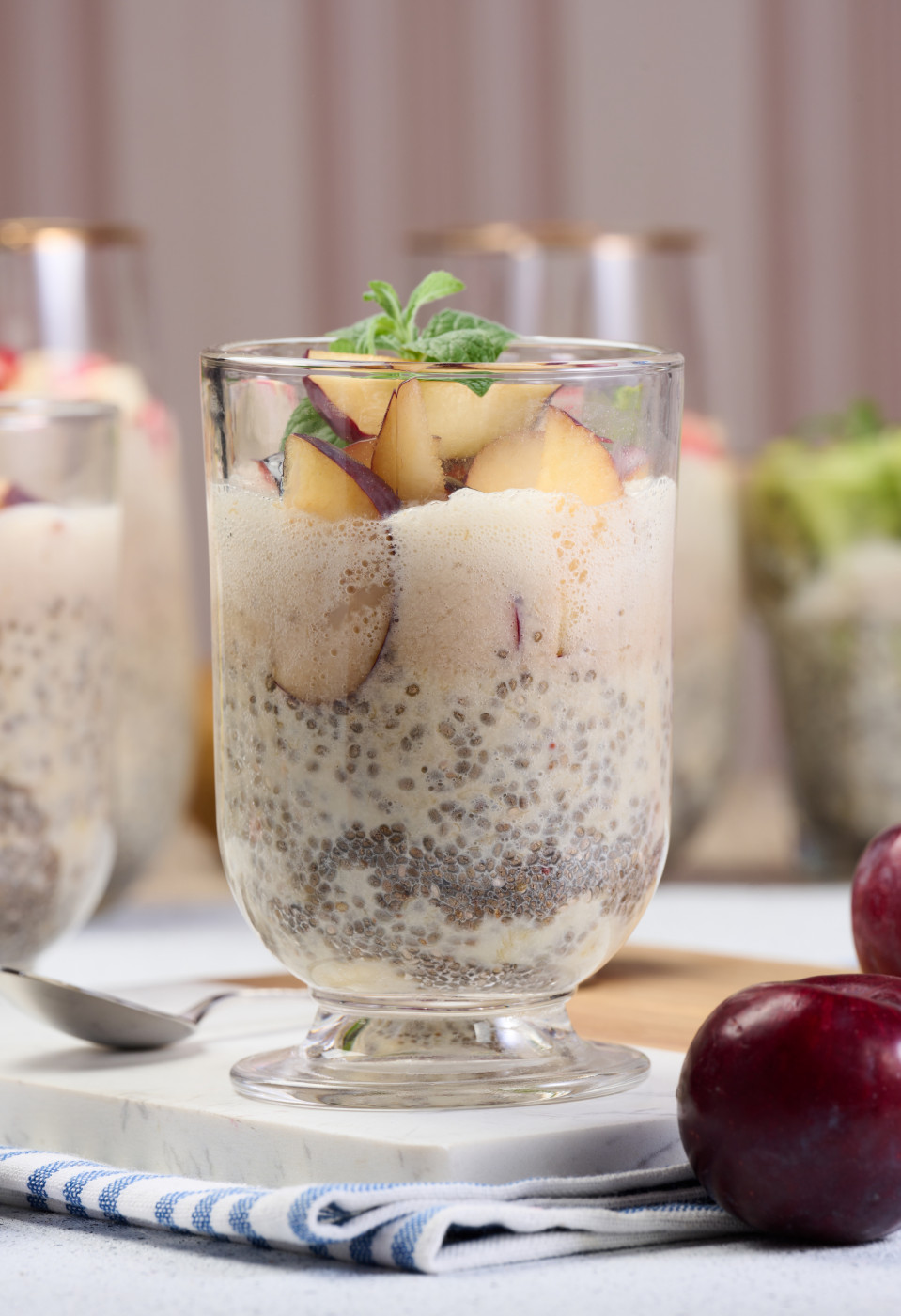 - Napravite čija puding s mlekom ili biljnim napitkom.