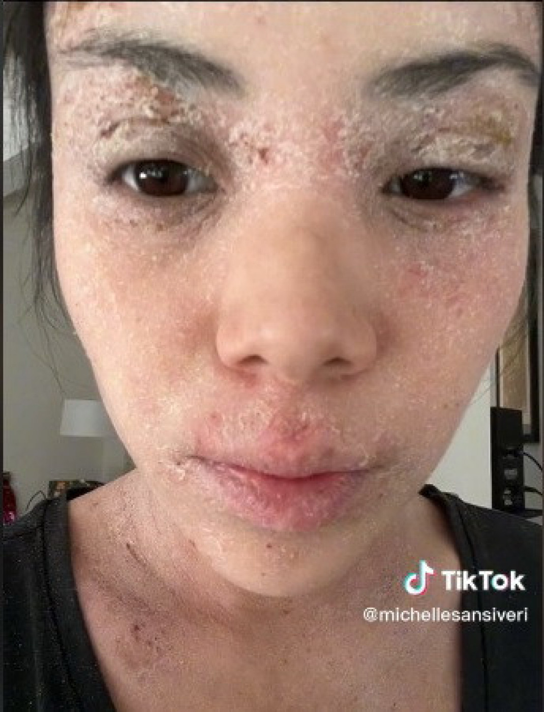 Tiktokerka je objavila video-snimak sumirajući sve fotografije od pojave ove bolesti do najkritičnije tačke kada je njeno lice postalo neprepoznatljivo. Isprva je sve krenulo sa crvenilom po nosu i licu a kasnije je ekcem zahvatio celo lice ali i neke delove tela. Ona se suočila sa stanjem poznatim kao topikalna zavisnost od steroida ili sindrom crvene kože (TSW) koji je potpuno uništio njenu kožu i sam izgled.