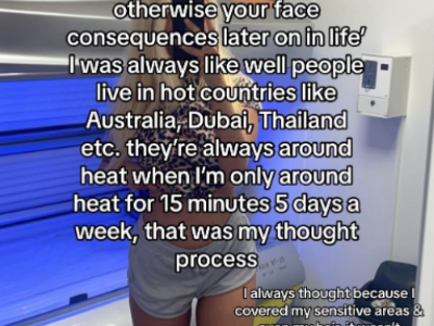 Ona je priznala da je postala zavisna od tamnog tena, koristeći solarijum pet dana u nedelji po 15 minuta. Iako su solarijumi zabranjeni u zemljama poput Australije i Brazila, istraživanje je pokazalo da su rezervacije za solarijume u ostatku sveta porasle za blizu 10 odsto u 2023. godini u odnosu na prethodnu.