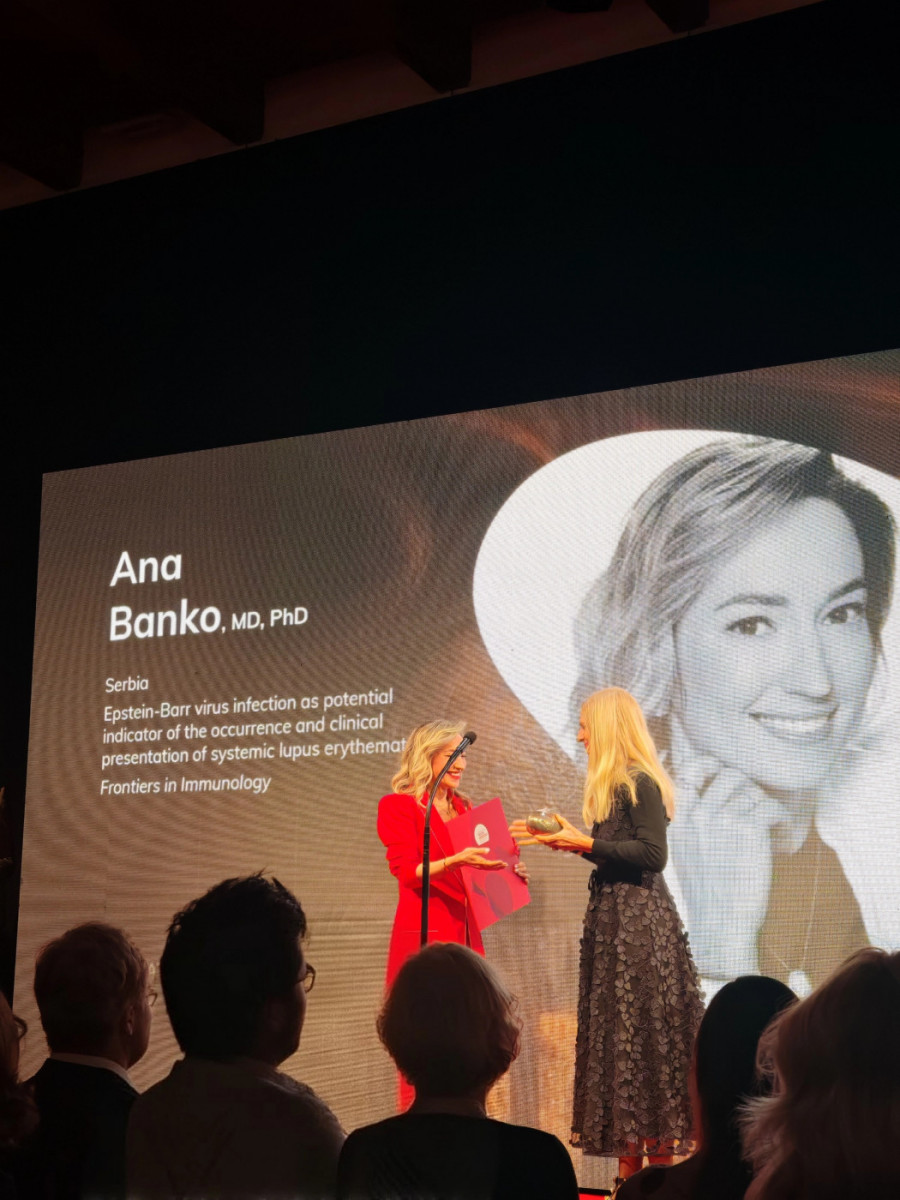 - Ovo je nagrada i priznanje za naučno dostignuće i veliki trud koji pojedinci i naučni timovi ulažu u istraživanja. Nije tako često da se nauka na ovaj način vrednuje i nagrađuje, pa je time i njen značaj veći. Rad za koji sam nagrađena, deo je trogodišnjeg naučnog projekta ROLERS koji se izvodio u Beogradu na Medicinskom fakultetu, a u saradnji sa Klinikom za reumatologiju i Klinikom za alergologiju i imunologiju UKC Srbije. Ovaj projekat deo je prvog poziva Fonda za nauku RS, a rađen je u veoma izazovnom periodu kovida, kada je pristup pacijentima sa sistemskim autoimunskim oboljenjima bio prilično otežan. Istraživali smo ulogu infekcije virusom Epštajn-Bar, narodu poznatom kao izazivačem mononukleoze, a koji se sve češće dovodi u vezu sa patogenezom sistemskih autoimunskih bolesti. Nagrađeni rad se bavio povezanošću aktivne virusne infekcije i lupusa. Rezultati su pokazali nesumnjivu i značajnu vezu, a mogli bi pomoći u dijagnostici i praćenju progresije lupusa, kao i identifikaciji ciljanih mesta za razvijanje buduće terapije. Pojedini markeri EBV infekcije pokazali su se i kao indikatori određenih kliničkih manifestacija bolesti kao što su limfopenija i alopecija, što može poslužiti kao još jedan dijagnostički alat lekarima. Ovo su rutinski testovi, lako dostupni, te se mogu brzo implementirati u postojeće protokole - rekla je prof. dr Banko.