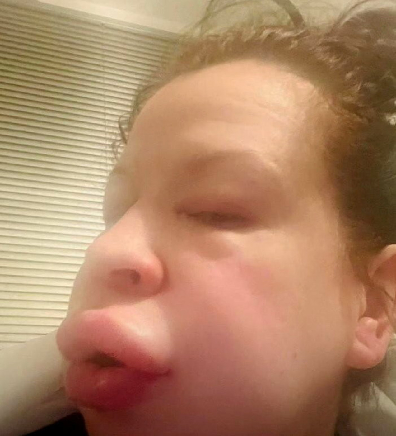 Džoana je ispričala da joj je lice "naduveno" i da je celo telo prekriveno bolnim crvenim plikovima. Ono što je još alarmantnije, njena dvogodišnja ćerka takođe se suočila sa osipima i bio joj je potreban inhalator.