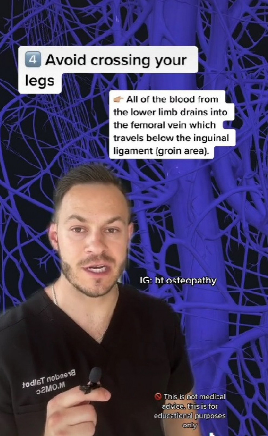 Naime, kanadski osteopata Brendon Talbot je na TikToku izjavio da nikada ne bi trebalo da prekrštate noge, ali je otkrio i svoje vrhunske savete za bolje zdravlje vena. On je rekao sledeće: