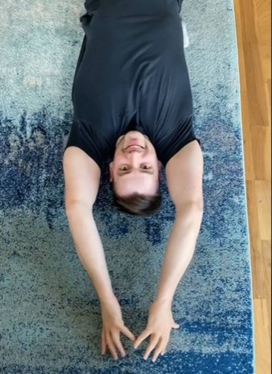 Kako je pokazao ovaj fitnes instruktor na snimku veći peškir, kao što su oni za tuširanje, se urola a krajevi se pričvrste gumicom sa obe strane kako se peškir ne bi odmotao. Potom ga stavite ispod donjeg dela leđa dok opušteno ležite na podu. Ruke podignite iznad glave sa dlanovima okrenutim ka podu, a nožne prste usmerite prema unutra dok se ne dodirnu. Opustite se i lezite mirno pet minuta.