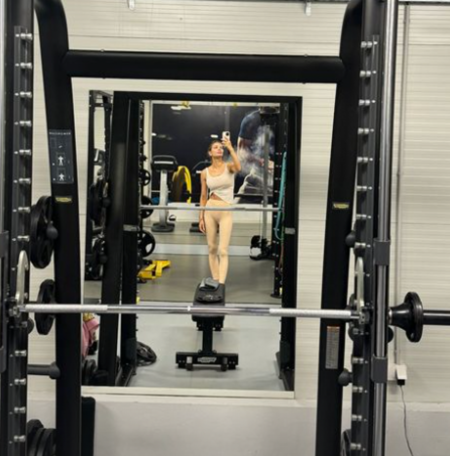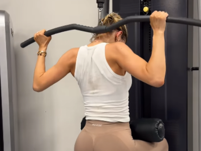 Primetno je kako ona izvodi mnoge zahtevene vežbe na različitim spravama, a po svemu sudeći njen trener ju je usnimio dok je naporno vežbala. Za početak je radila vežbe za noge i zadnjicu, da bi prešla na spravu kojom je vežbala gornji deo tela, tačnije ramena i grudi.